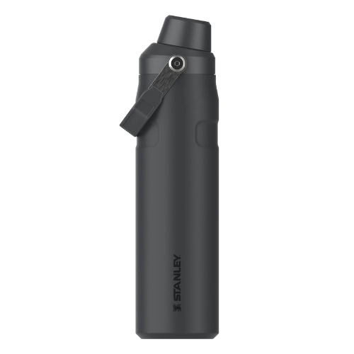 The larger 1.06 L Stanley Water Bottle is now available to keep your drinks cold for 18 hours, or 2.5 days when filled with ice. Simply push the button to open the leak-proof lid, and enjoy the convenient wide mouth opening for fast sipping. You can toss it in your bag with a secure steel latch without any concerns.
