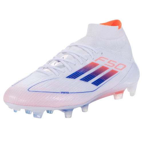 The iconic Adidas F50 cleats are back, designed for game-changing speed. Lightweight and comfortable, they feature a mid-cut PRIMEKNIT collar that fits snugly around your foot and a FIBERTOUCH upper for support. The SPRINTWEB 3D texture offers excellent ball control, while the SPRINTFRAME 360 outsole helps with acceleration in all directions.